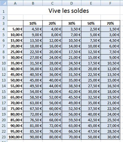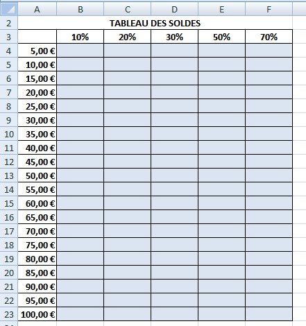Vous devez trouver l'opération, à insérer dans les cellules bleues, elle va vous permettre d'utiliser la poignée de recopie sur tout le tableau, colonne par colonne.