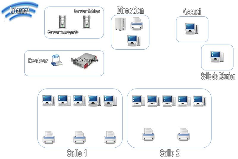Sur papier libre ou après avoir téléchargé les documents, établissez le plan du "cablage réseau"