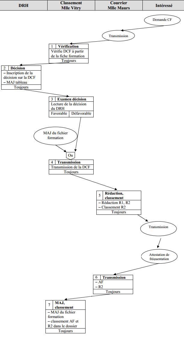 Ainsi que le montrent les deux pièces jointes, le processus « Formation » apparaît comme perfectible. En effet, on ne compte pas moins de 6 flux d’échanges d’information entre l’intéressé et le poste de Mlle Vitry.