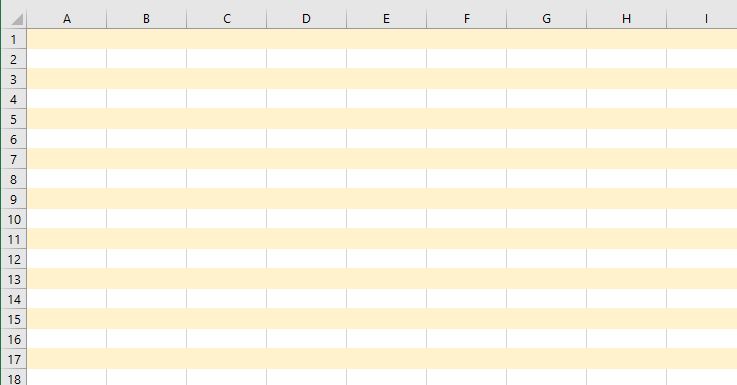 L'exercice consiste à sélectionner d'un coup les lignes impaires de 1 à 17 et d'appliquer un fond de couleur.