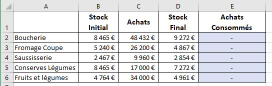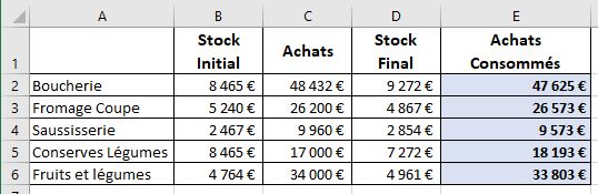 Reproduisez ce tableau et insérer les opérations (il y en a 2) qui vont vous permettre de trouver le bon résultat dans les cellules bleues.