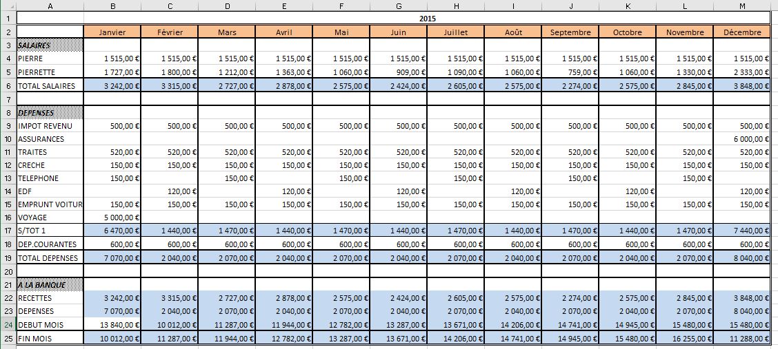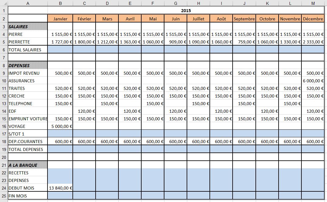 Utiliser poignée de recopie en B6, B16, B20, B21, B23.