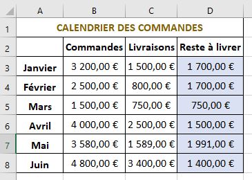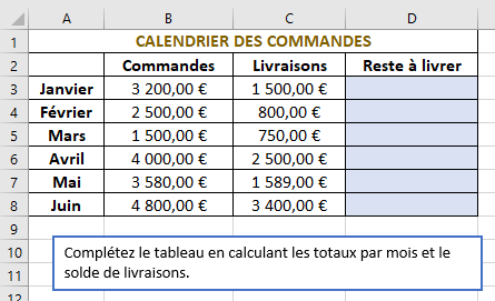 Complétez le tableau en calculant les totaux par mois et le solde de livraisons.