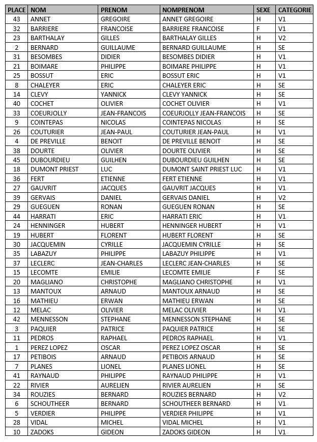 Trier les noms des coureurs par ordre Alphabétique avec la fonction trié du groupe "Données".