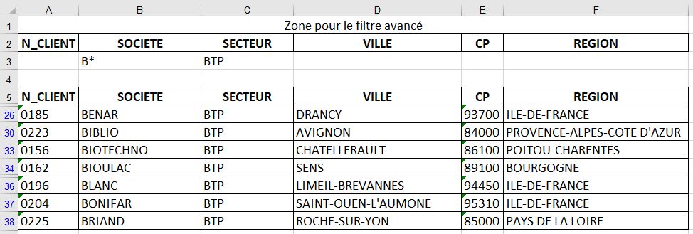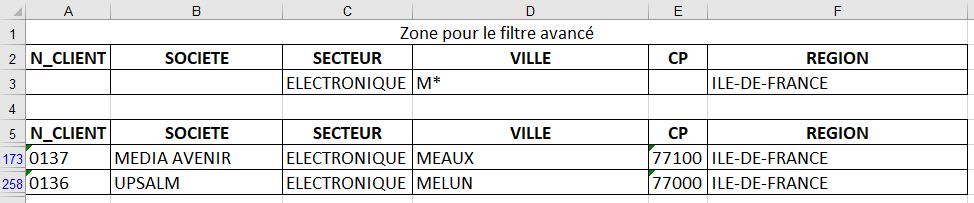 En utilisant les "filtres avancés" vous :