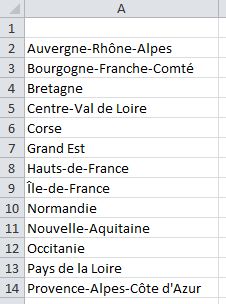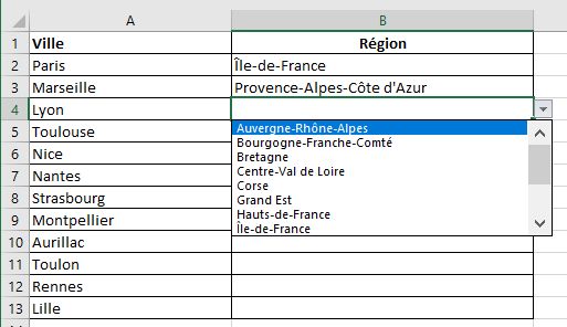 Vous utilisez la feuille "liste" pour permettre une validation des données des régions en face de chaque ville.