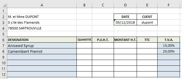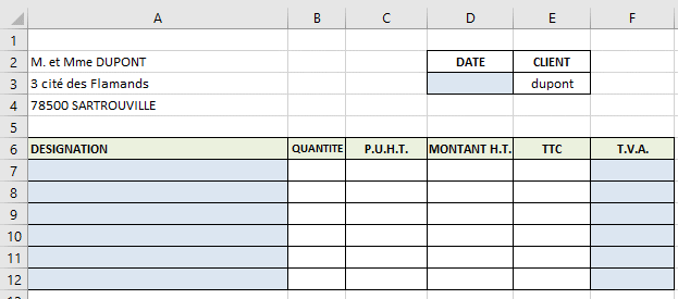 Dans la colonne désignation et la colonne TVA vous mettez en place un menu déroulant en vous appuyant sur les colonnes L et M que vous masquerez à l'issue.