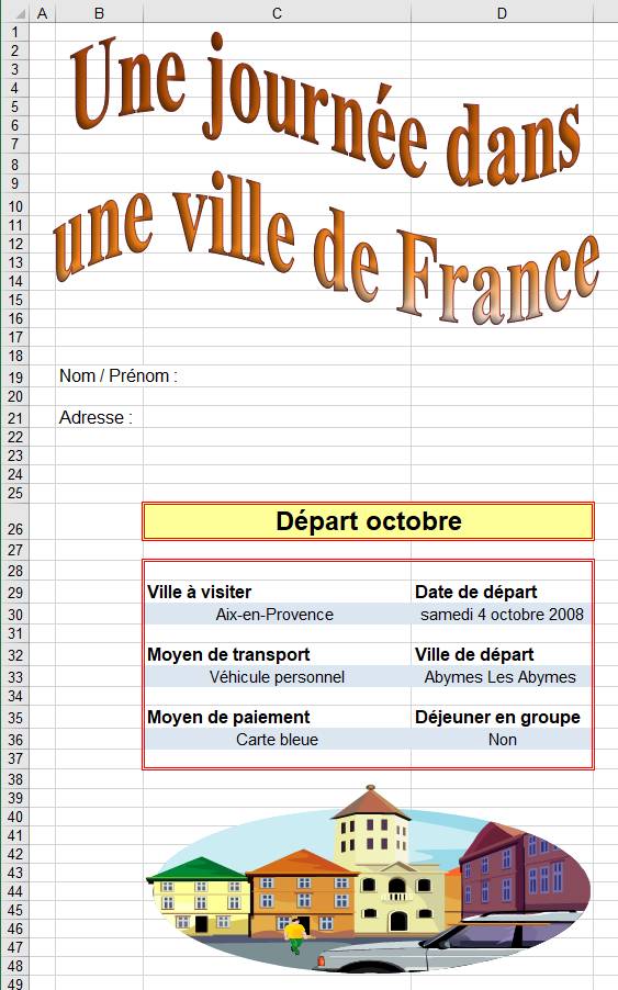 - Choix Dates de départ et villes de départ à piocher dans les feuilles Date et villes